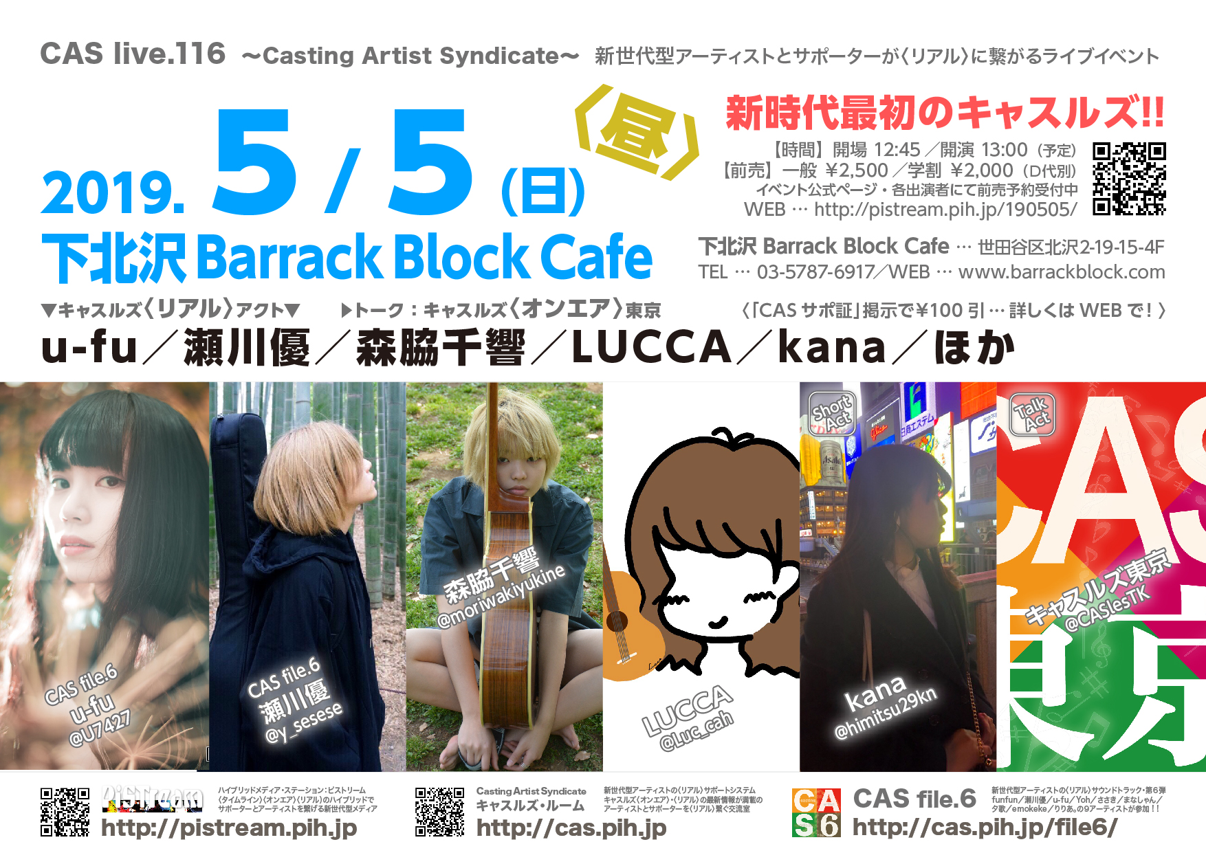 メインアクト:瀬川優/u-fu/りりあ。/LUCCA/森脇千響