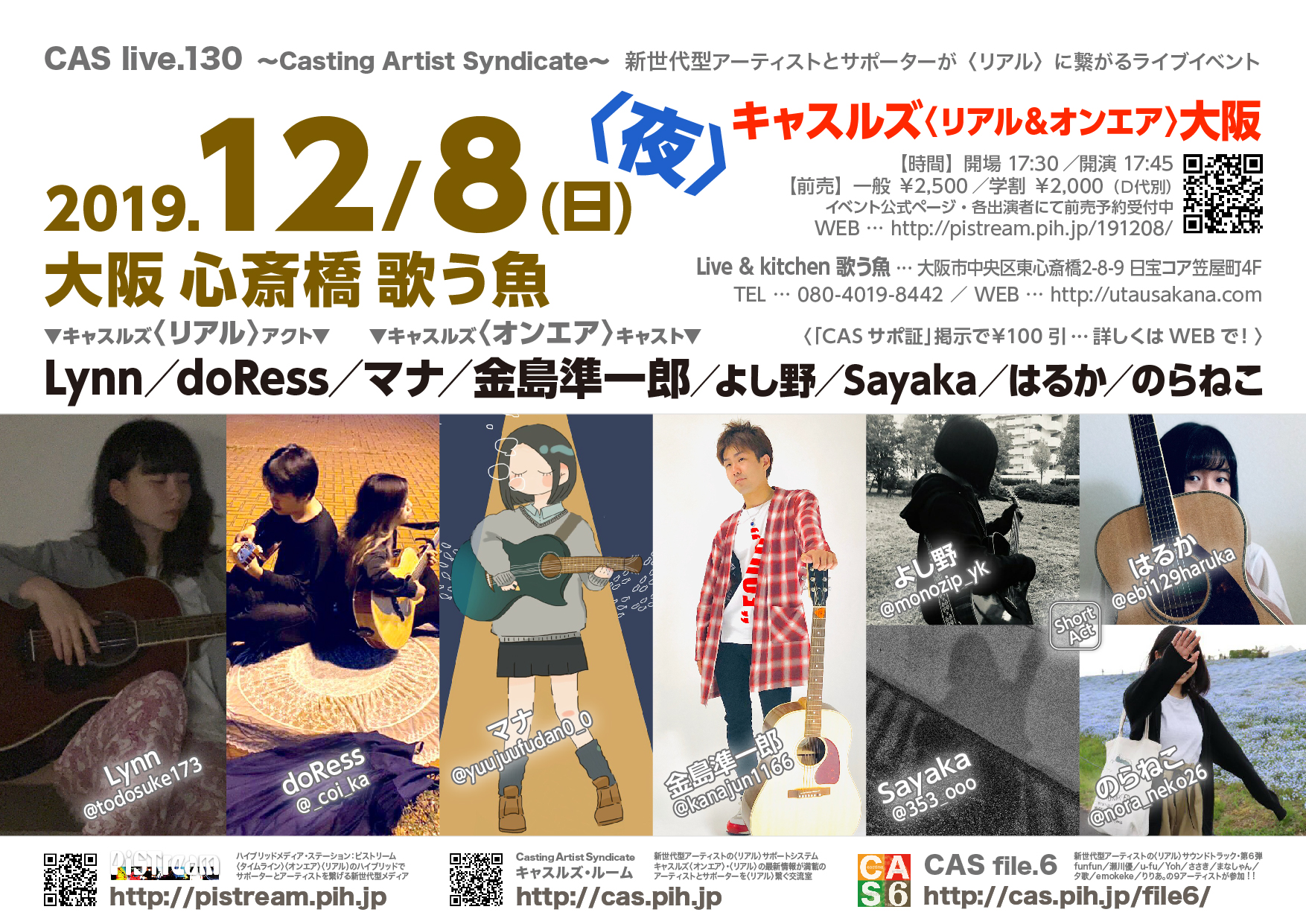 2019年12月8日(日)〈夜〉@心斎橋 歌う魚