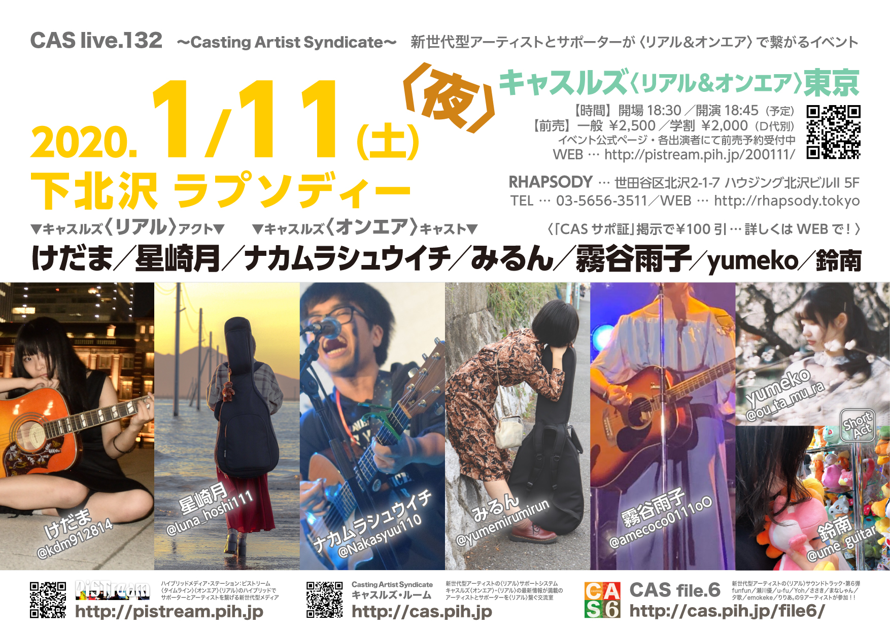 メインアクト:けだま/星崎月/ナカムラシュウイチ/みるん/霧谷雨子