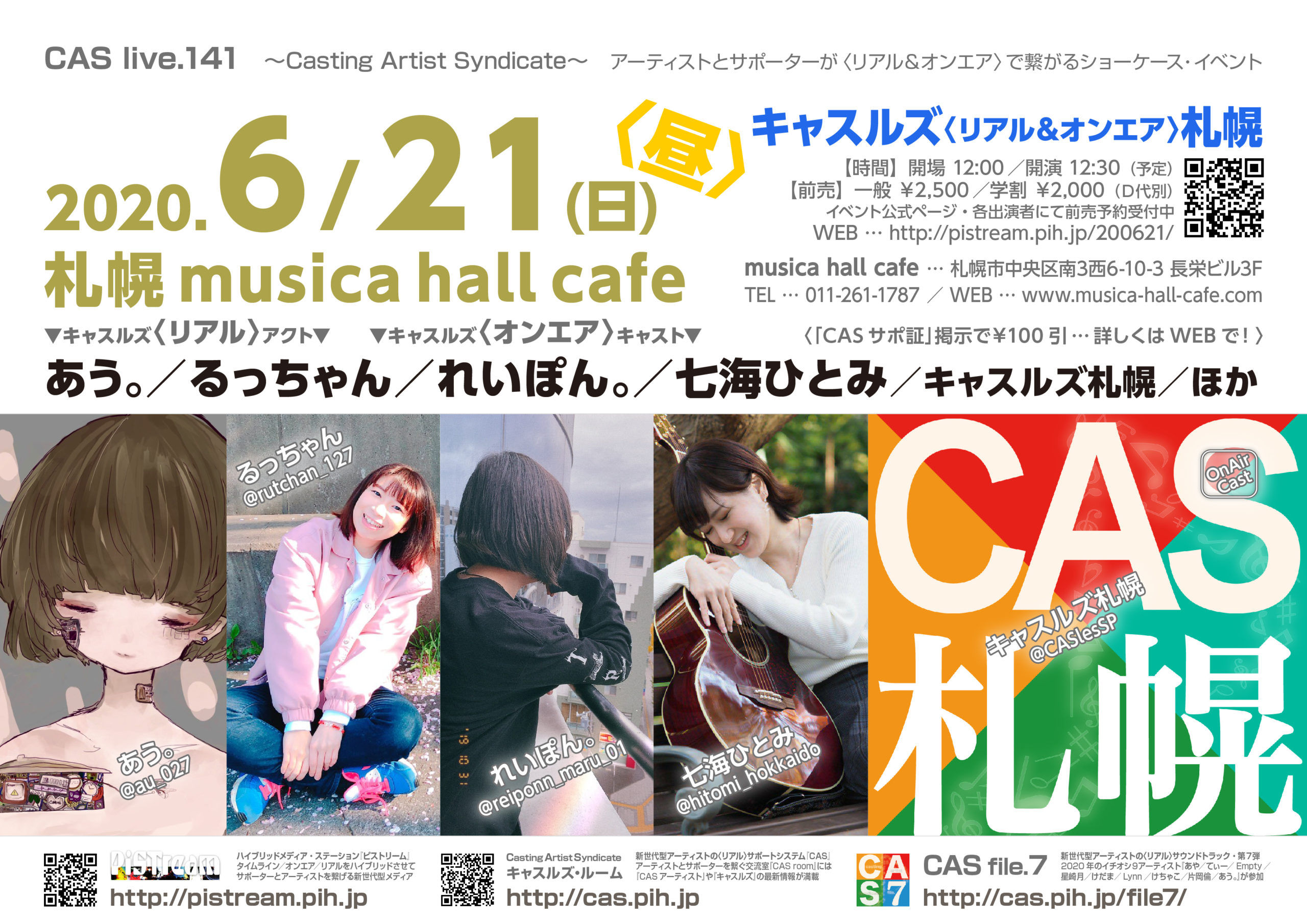 2020年6月21日(日)〈昼〉@ 札幌 musica hall cafe
