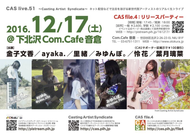 In CAS file.4, CAS live, CAS tube, Casting Artist Syndicate, CD, CONTACT, EVENT, PiSTream, PRODUCT, PROGRAM, TICKET