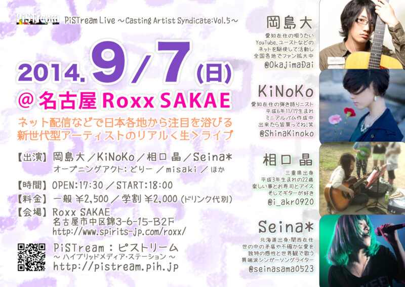 In CAS live, CAS tube, Casting Artist Syndicate, CONTACT, EVENT, PiSTream, PiSTream, PROGRAM, TICKET, キャスルズ, キャスルズ名古屋