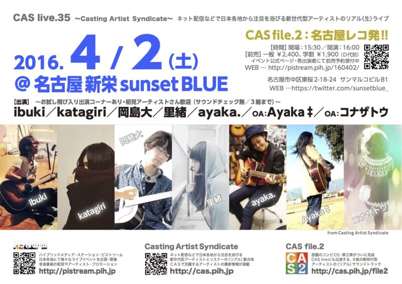 In CAS file.1, CAS file.4, CAS live, Casting Artist Syndicate, CONTACT, EVENT, PiSTream, PiSTream, PRODUCT, PROGRAM, TICKET, キャスルズ, キャスルズ〈オンエア〉, キャスルズ〈リアル〉, キャスルズ名古屋