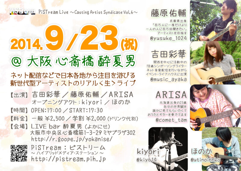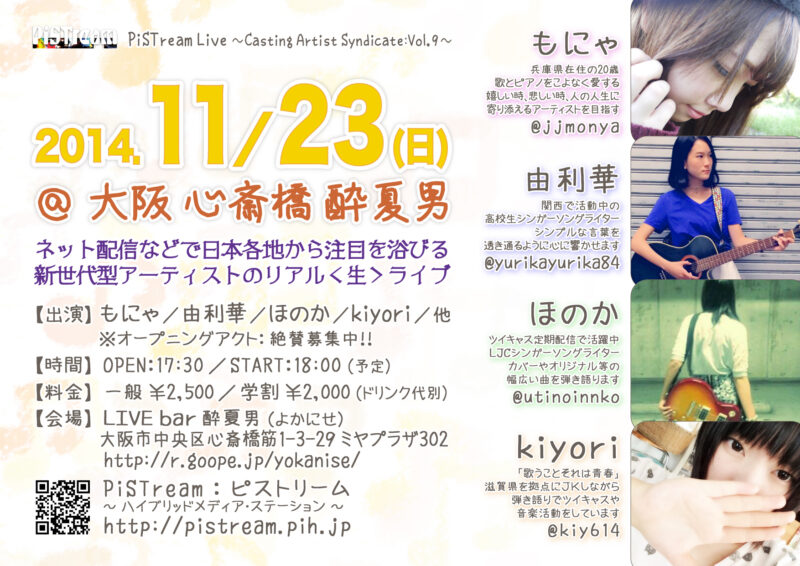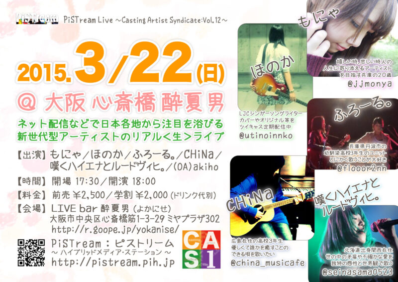 In CAS live, CAS tube, Casting Artist Syndicate, CONTACT, EVENT, PiSTream, PiSTream, PROGRAM, TICKET, キャスルズ, キャスルズ大阪