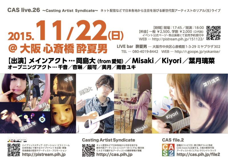 In CAS file.1, CAS live, CAS tube, Casting Artist Syndicate, CD, CONTACT, EVENT, PiSTream, PiSTream, PRODUCT, PROGRAM, TICKET, キャスルズ, キャスルズ大阪