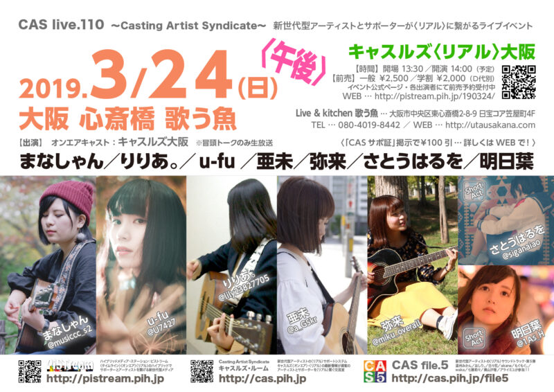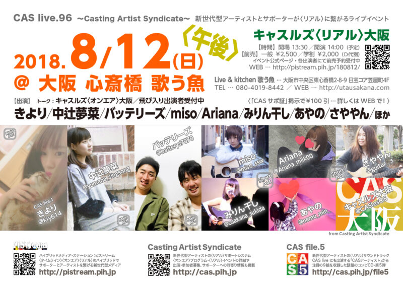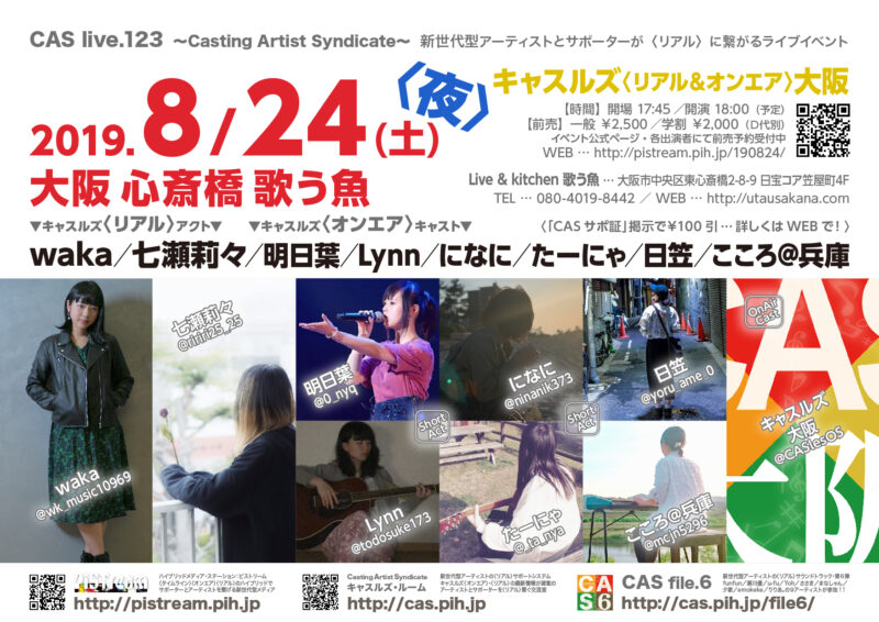 In CAS live, Casting Artist Syndicate, CONTACT, EVENT, PiSTream, PROGRAM, TICKET, キャスルズ, キャスルズ〈オンエア〉, キャスルズ〈リアル〉, キャスルズ大阪
