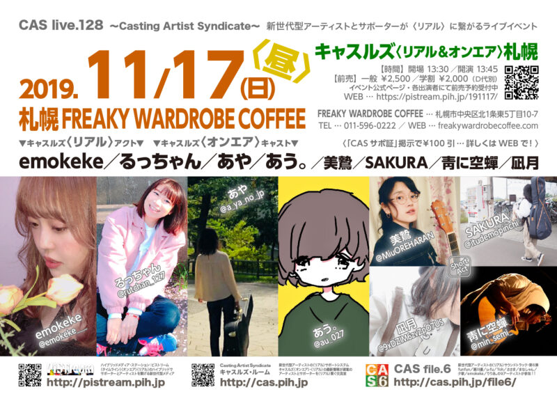In CAS live, Casting Artist Syndicate, CONTACT, EVENT, PiSTream, PROGRAM, TICKET, キャスルズ, キャスルズ〈オンエア〉, キャスルズ〈リアル〉, キャスルズ札幌